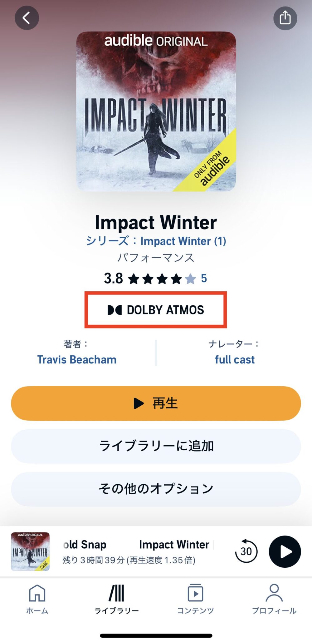 実際に「Impact Winter」のオーディオブックをダウンロードしてみました。